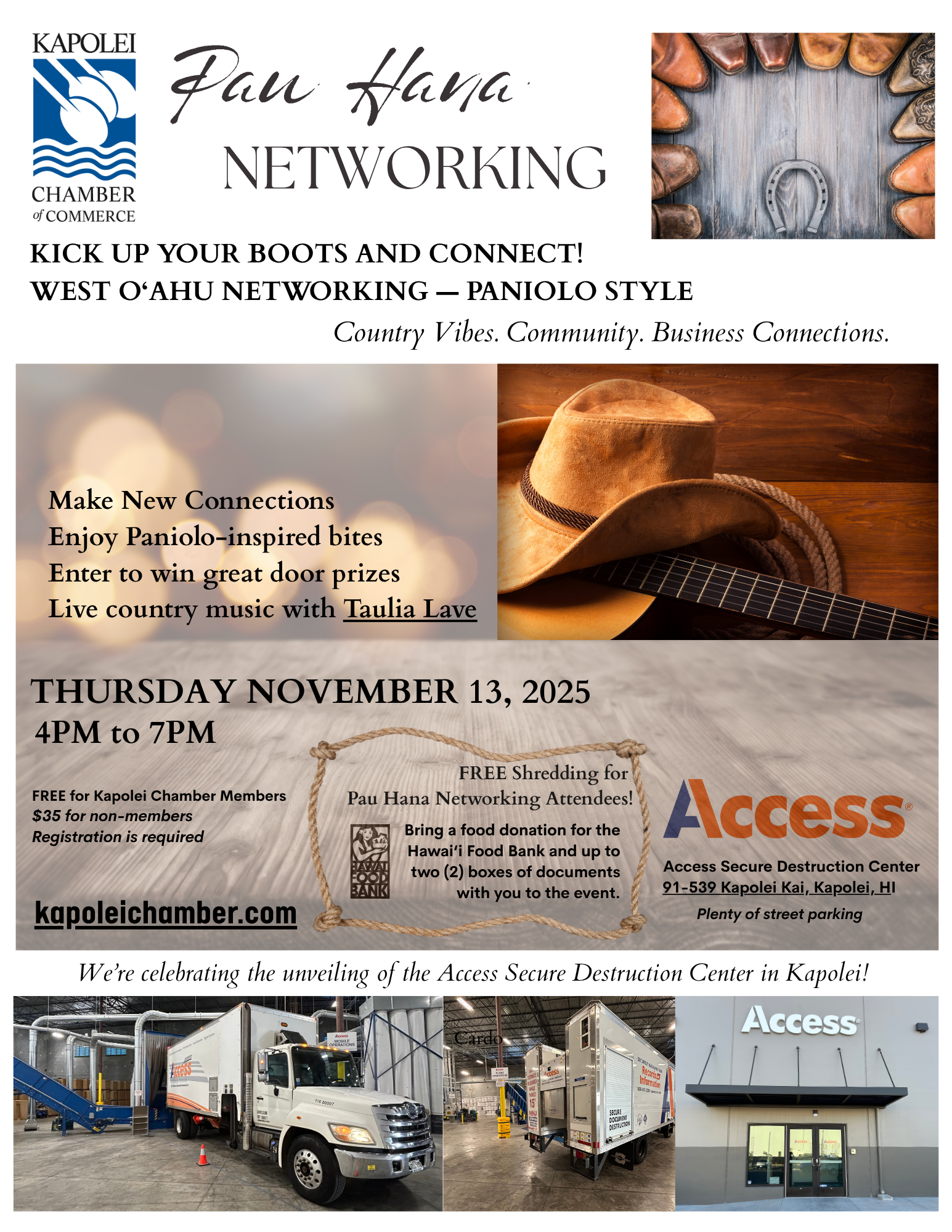 Join us for our final Kapolei Chamber Pau Hana Networking event of 2025!